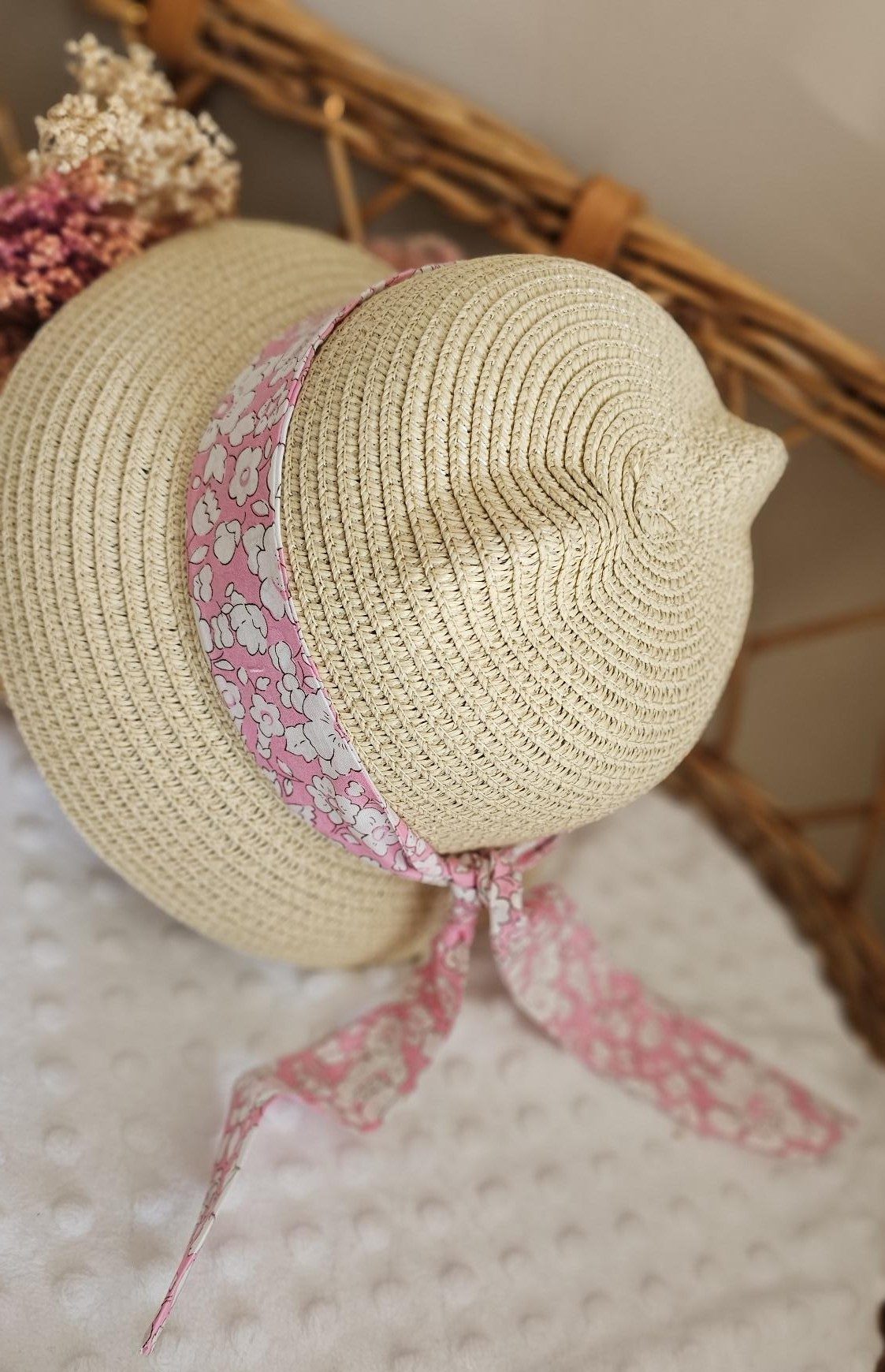 Craquez pour ce jolie chapeaux de paille, l’accessoire indispensable pour protéger vos petites puces avec style. On adore son ruban aux motifs délicats qui apportent une touche bohème à toutes les tenues d’été.
