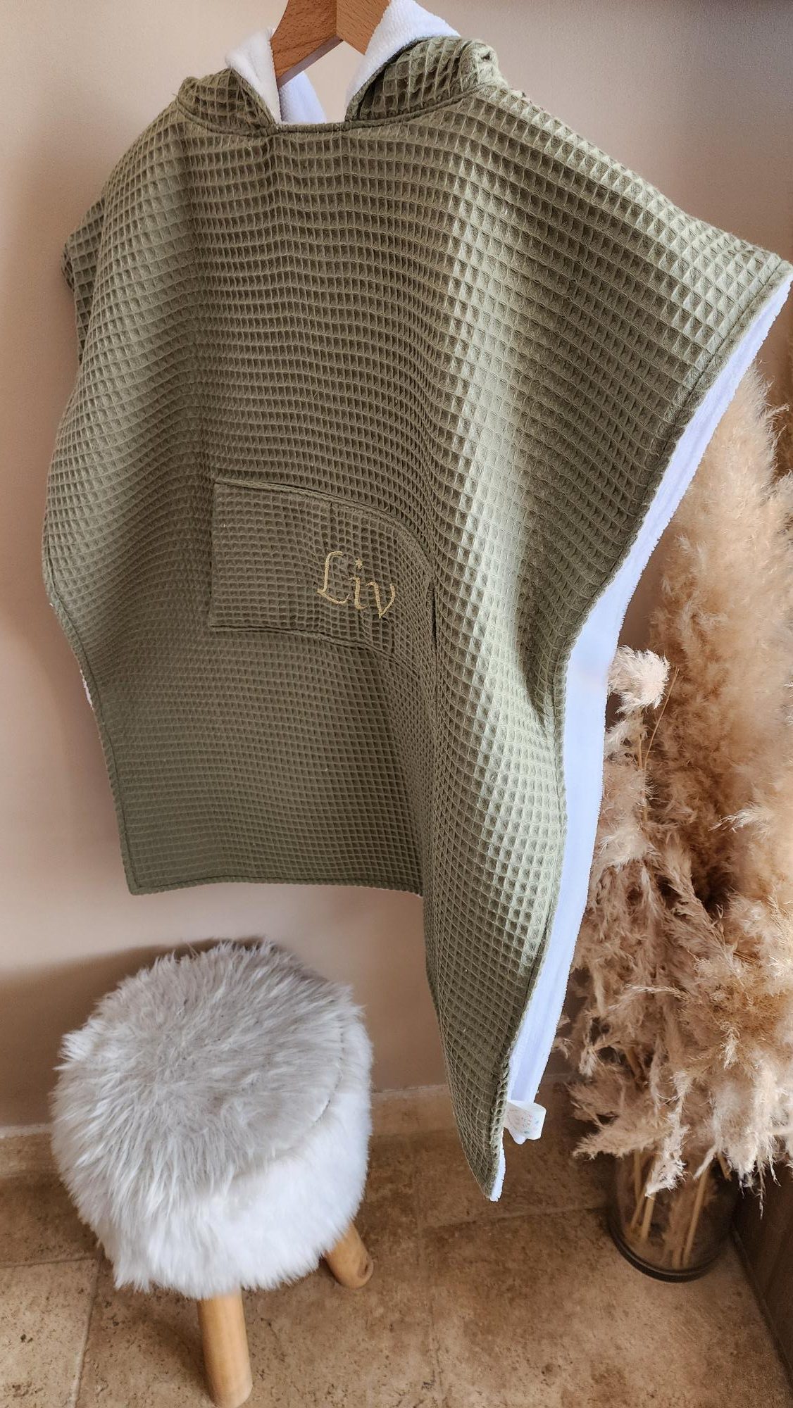Un indispensable pour la piscine, la plage, les vacances, vos petits bouts y seront bien au chaud a la sortie du bain! Un séchage rapide et tout doux, votre enfant sera libre de ses mouvements grâce aux ouvertures sur le côté. Le poncho possède également une capuche pour protéger la tête de votre bébé. Vous avez la possibilité de broder le prénom ou un mot doux et de choisir si vous voulez une poche sur le devant.