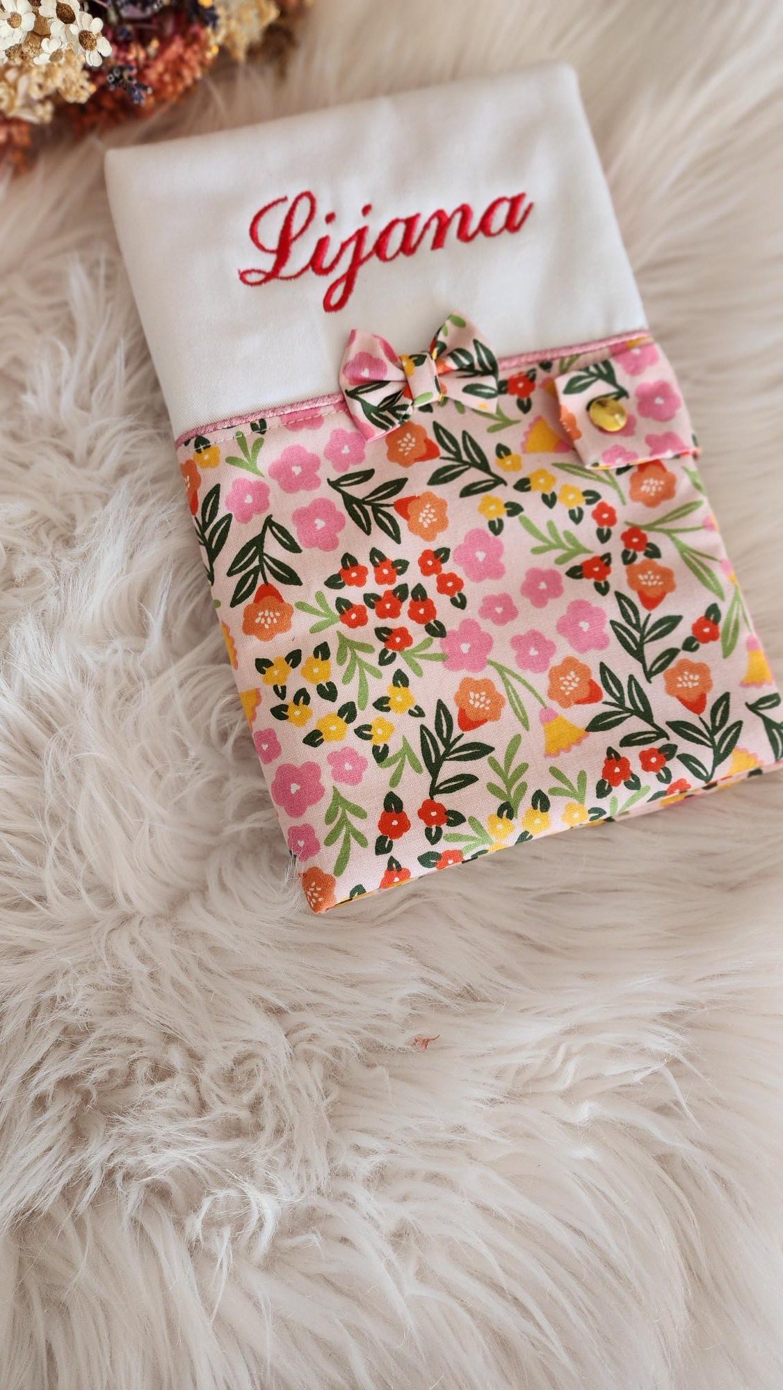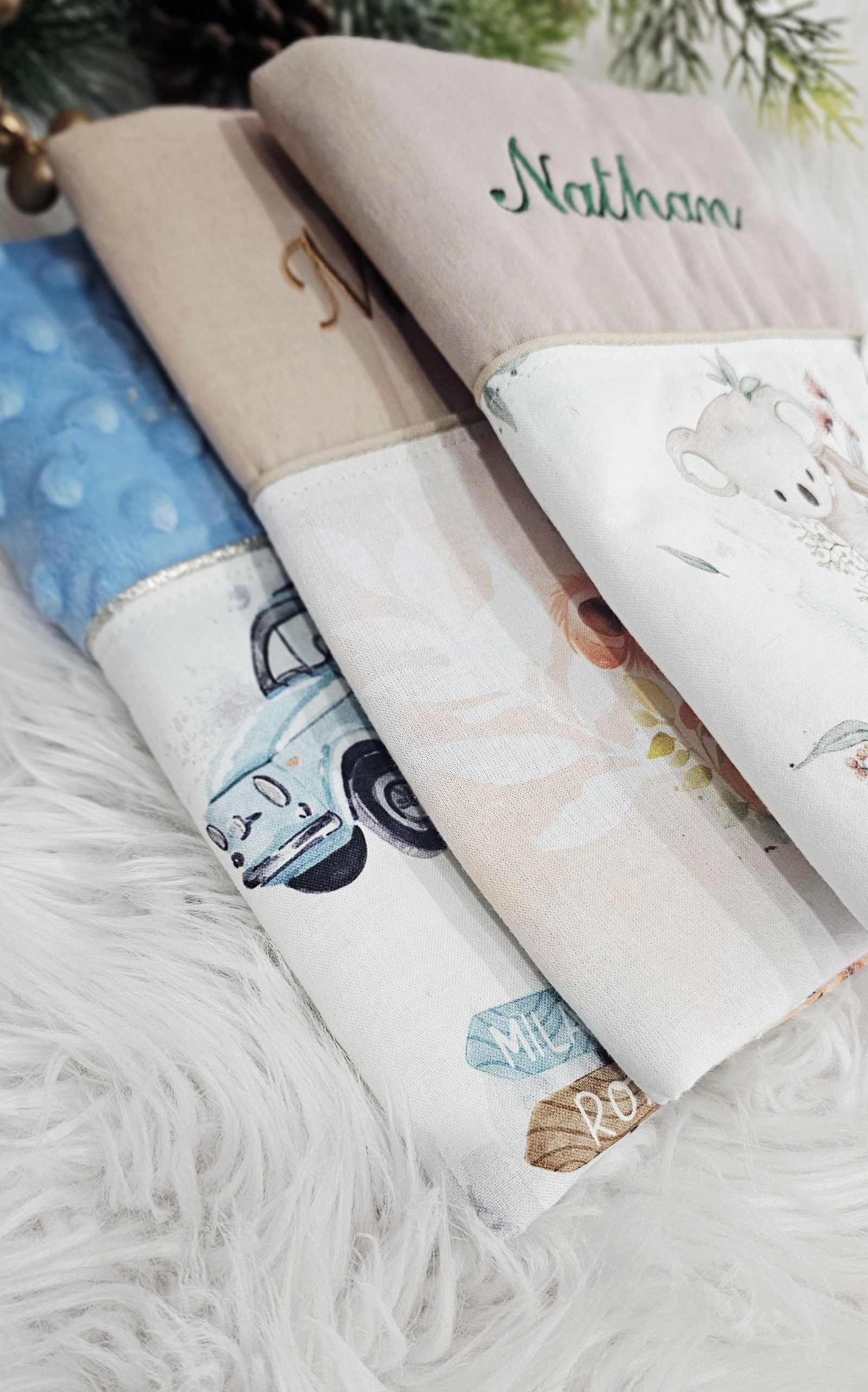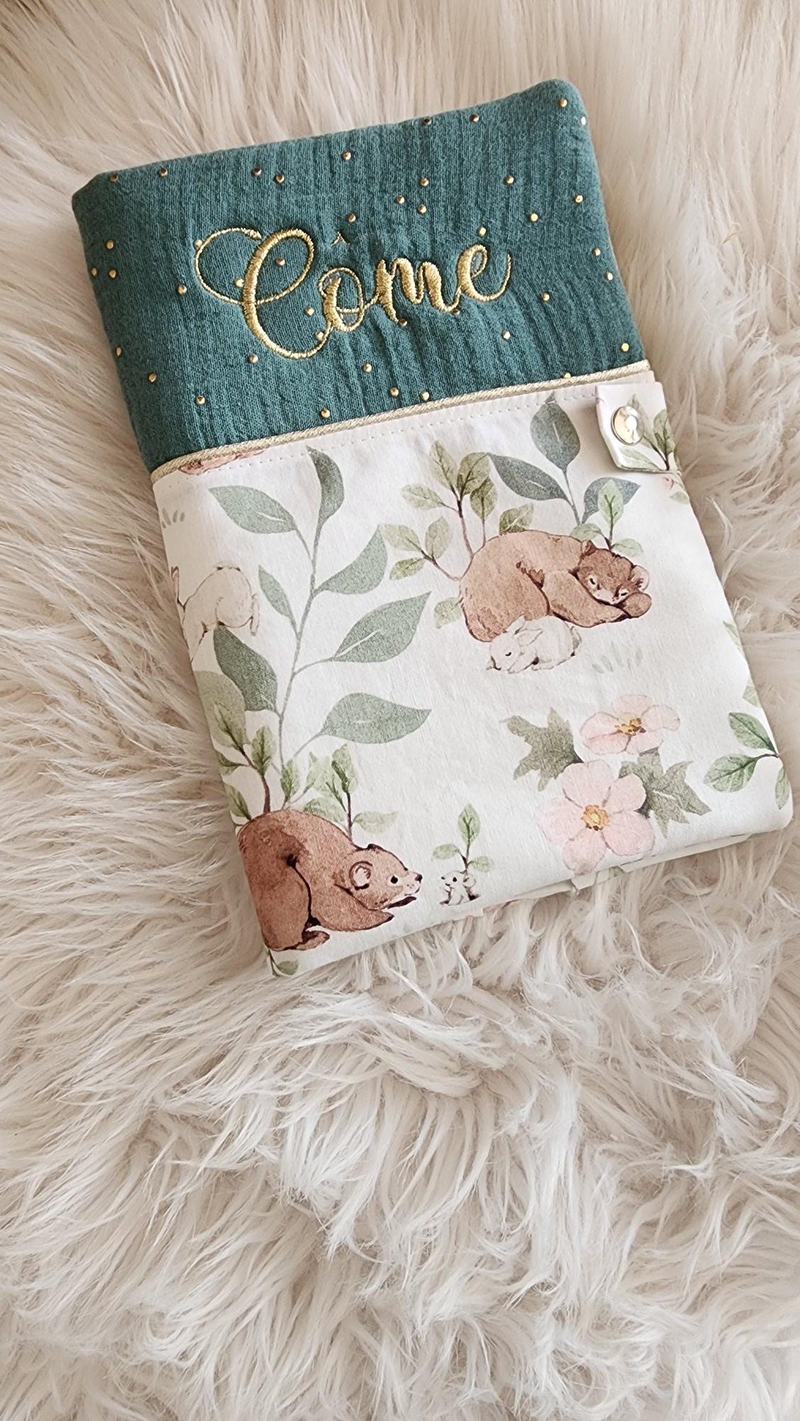 Un accessoire qui suivra bébé pendant de nombreuses années! celui- ci est personnalisé avec une broderie prénom. Il se ferme par une pression en métal et est molletonné .